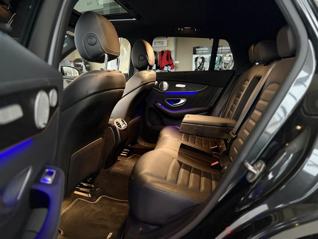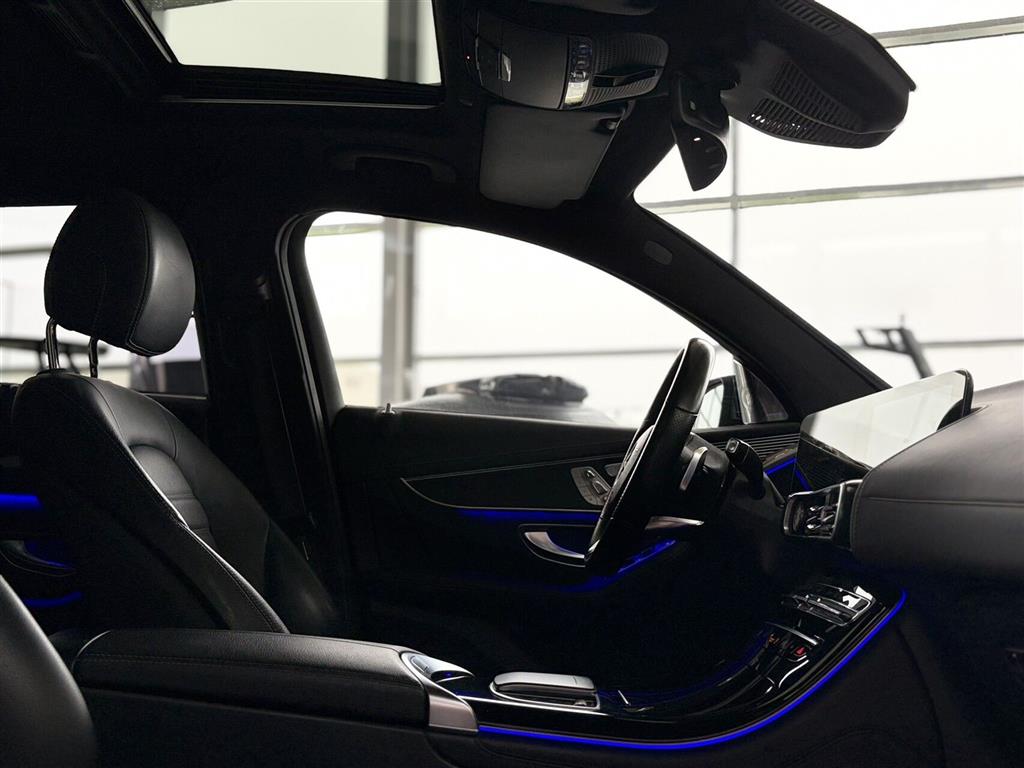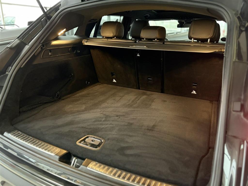 Sportssæder med el-justering, memory og højdejustering, multikontursæder foran, splitbagsæde, sædevarme for og bag, ambient belysning, mørk loftbeklædning, el-soltag, elektrisk bagklap, 4x el-ruder, elektrisk parkeringsbremse, 4MATIC firehjulstræk, automatgear, adaptiv fartpilot, aktiv vognbaneassistent, automatisk nødbremsesystem, Pre-Safe, auto hold, parkeringssensorer for og bag, regnsensor, 360° kamera, bakkamera, aktiv parkeringsassistent, svingbart anhængertræk (elektrisk), digital instrumentering, head-up display, mørktonede ruder, el-klapbare sidespejle, nøglefri tænding, AMG Line interiør og eksteriør, trådløs mobilopladning, Apple Carplay og Android Auto.
