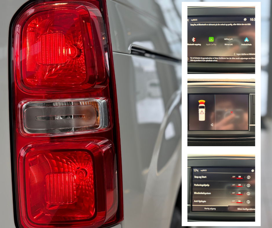 LED kørelys. Tågelygter, parkeringssensor for og bag, fjernbetjent centrallås, el-ruder, el-sidespejle med varme, sædevarme, højdejusterbart førersæde, multifunktionslæderrat, 2 zoners klimaanlæg, fartpilot, kørecomputer, Android Auto, Bluetooth, håndfri telefonering, regnsensor, udvendig temperaturmåler samt anhængertræk med tilladt påhæng med bremser op til 2.500 kg.